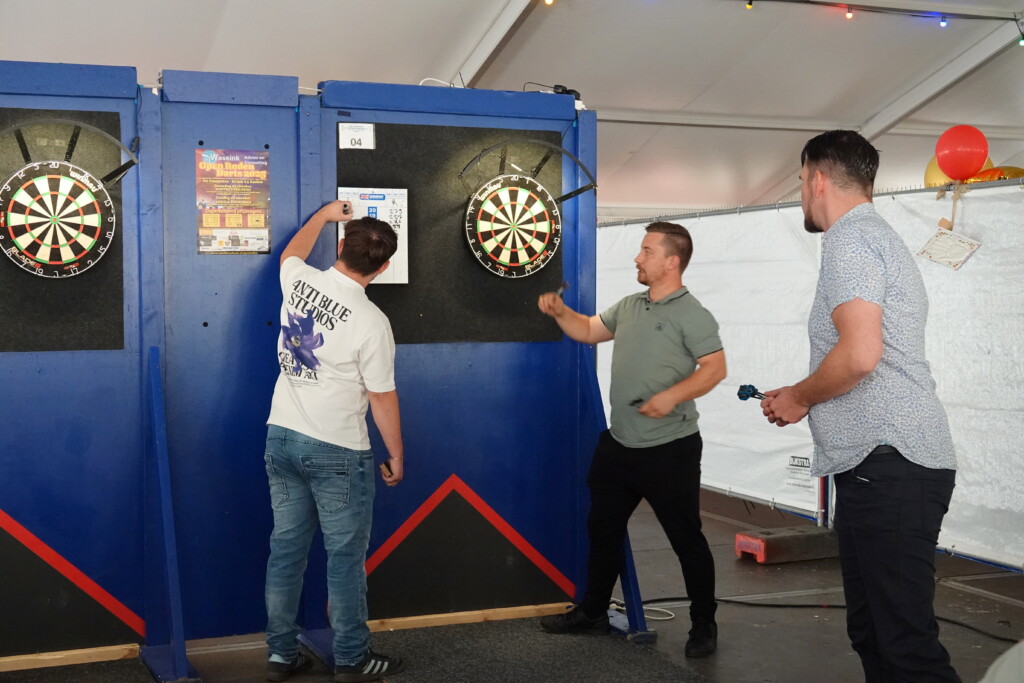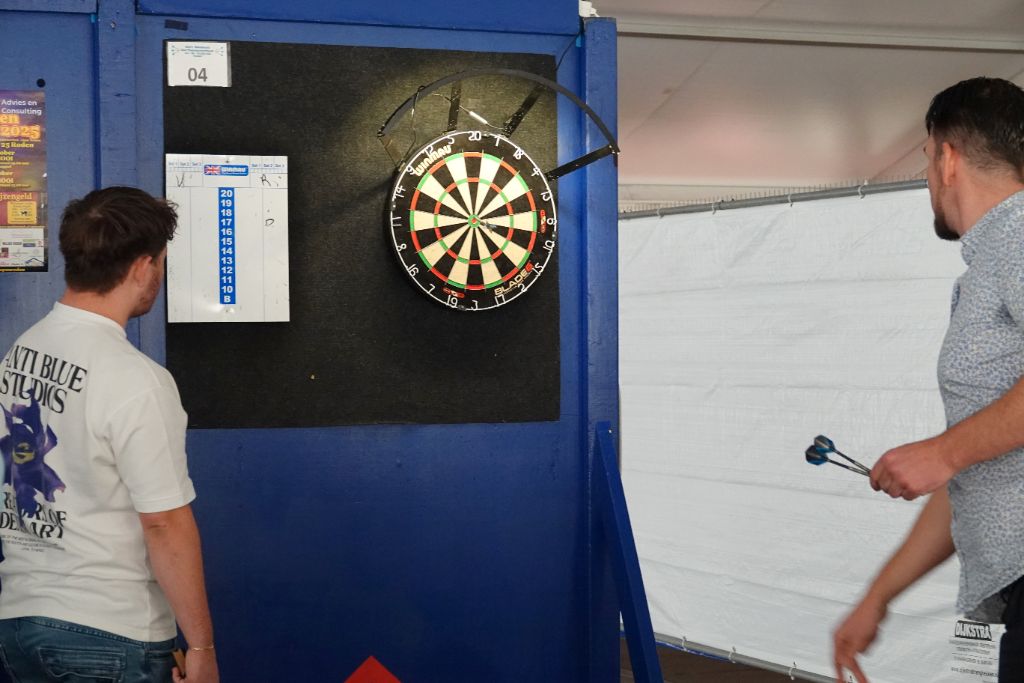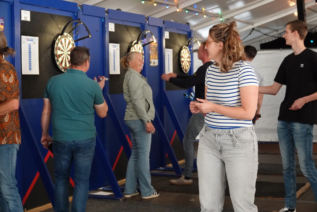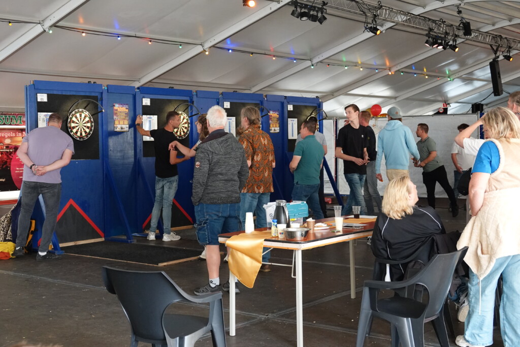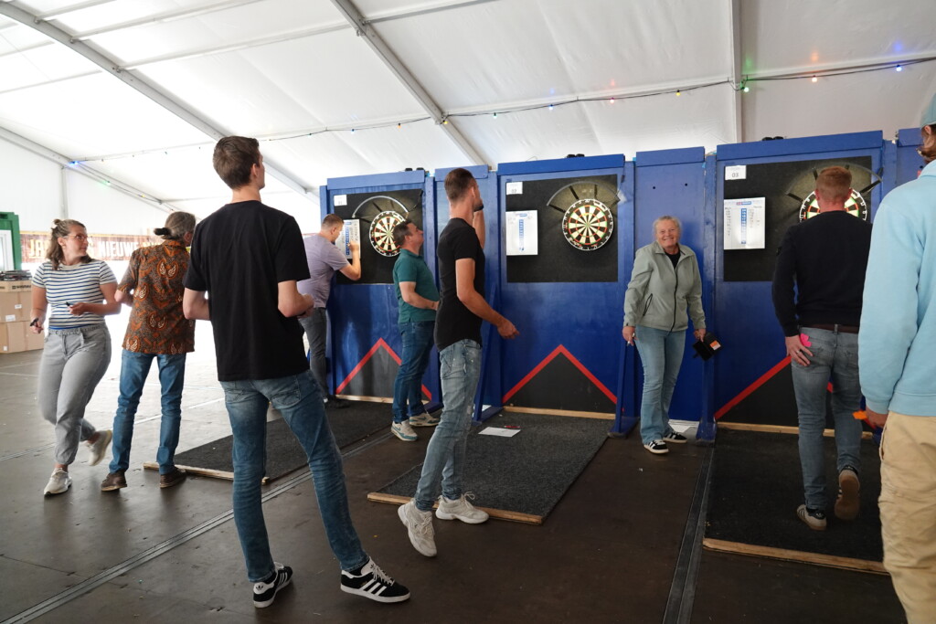 Vrijdagmiddag was er een darttoernooi in de feesttent. Deelnemers konden met eigen dartpijlen een gooi doen naar de prijzen.