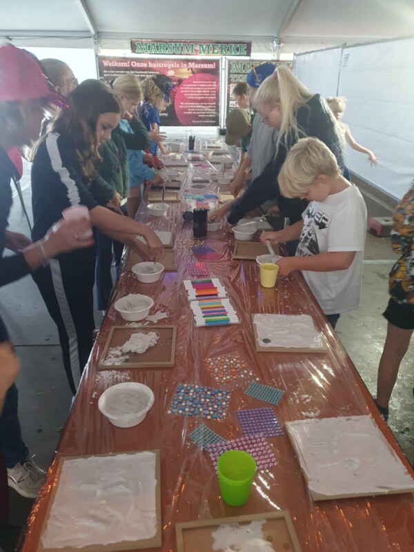 Vrijdagochtend zijn wij met alle leerlingen vertrokken richting de tent van de Marsummer Merke. Hier stond een super leuk programma voor iedereen klaar! Een rode-loper-estafette waarbij iedereen zich gedurende de race moest opmaken en verkleden, een quiz met allerlei muziekvragen, Disney figuren en andere raadsels. Ook konden we nog een plaat maken met onze handafdruk en deze mooi versieren.