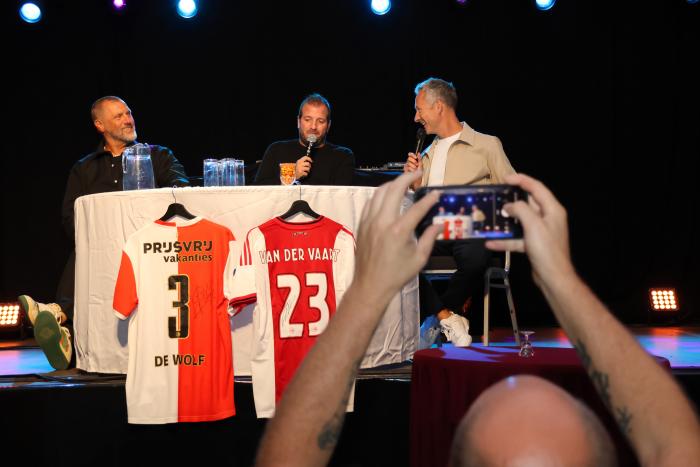 Tijdens deze 2e helft werden de lootjes getrokken. Er waren diverse prijzen met als hoofdprijs een gesigneerd Ajax shirt van Rafael v.d. Vaart en een gesigneerd Feyenoord shirt van John de Wolf. Het toeval bepaalde dat beide hoofdprijzen naar één en dezelfde winnaar gingen, deze bezoeker had dus driebubbel geluk: een mooie avond en 2 mooie shirts!